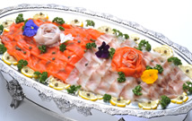 | 【お料理】 | オードブル、サーモンマリネ、ローストビーフ、お寿司、フルーツ盛り合わせ |